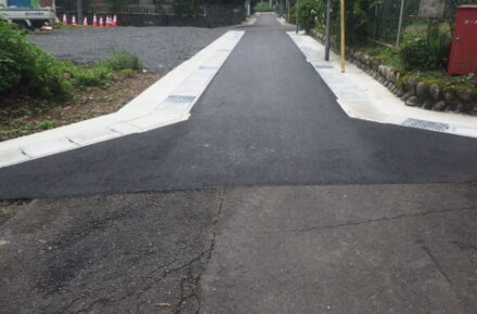 側溝周辺を適切な材料で埋め戻し、十分に転圧します。その後、舗装の復旧工事を実施し、既設道路と同等以上の品質を確保します。